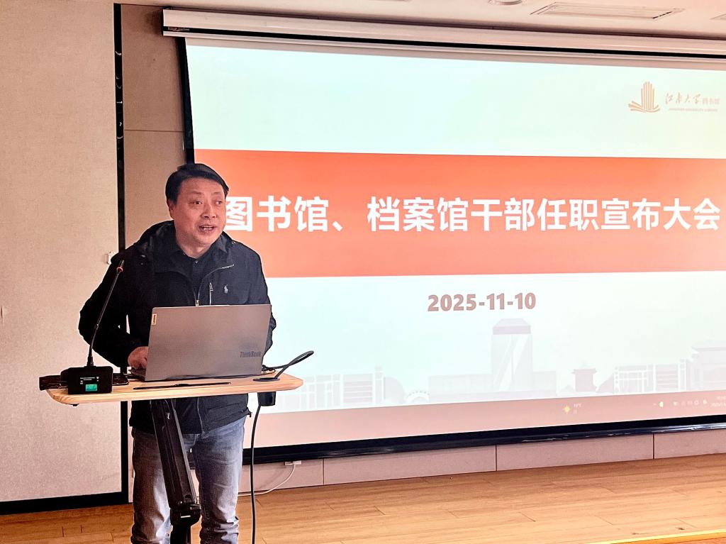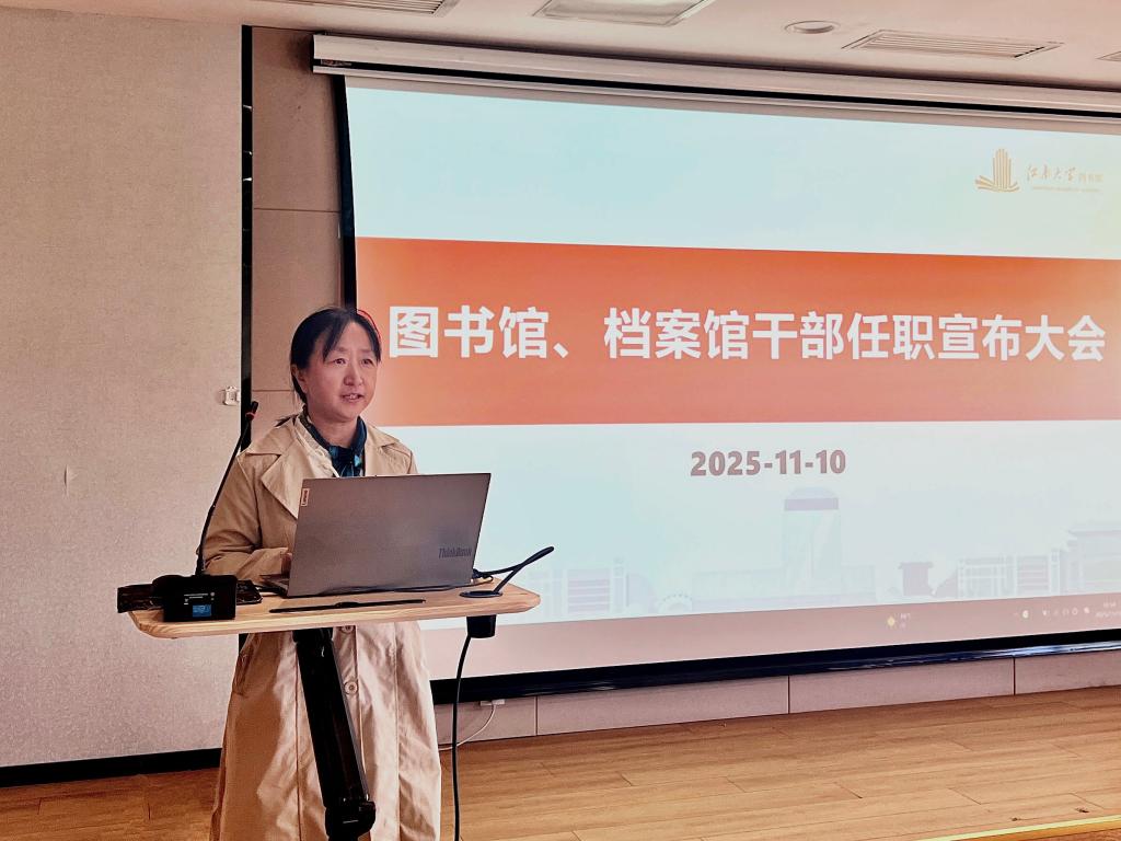 11月10日下午,图书馆、档案馆在鼋阅空间召开干部任职大会。校党委常委、副校长张影陆,党校常务副校长兼党委组织部副部长周雪晖出席会议,两馆领导班子与全体馆员参加会议。会议由图书馆、档案馆馆长陈敬华主持。