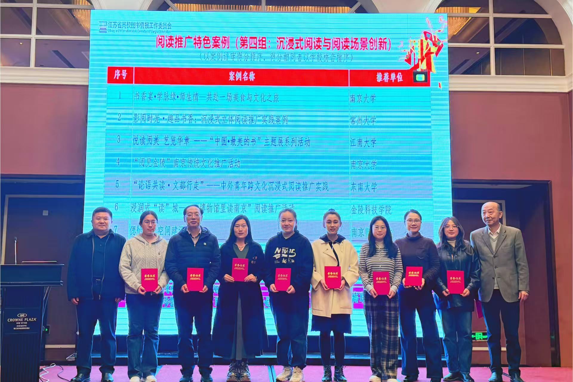 12月11日下午,2025年江苏省高校图书馆阅读推广精品案例分享会暨颁证仪式在镇江隆重举行。我校图书馆报送的《悦读阅美·艺览华章——“中国·最美的书”主题展系列活动》与《纸韵经纬·四海同书——“做一本自己的中国古书”国际工作坊》,荣获“特色案例奖”称号。