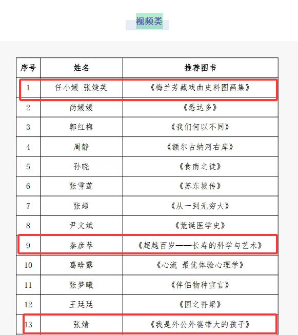 2025年图书馆“阅美善读--馆员荐书”(第四届)活动推荐展示名单(排名不分先后)