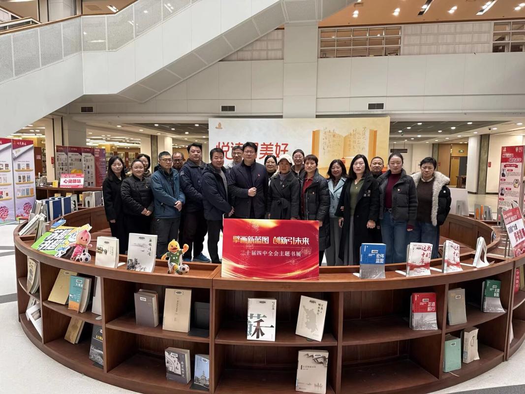 最后,全体人员移步图书馆一楼,共同参观了《擘画新蓝图 创新引未来——学习贯彻党的二十届四中全会精神》主题书展。大家驻足翻阅、交流感悟,从书籍中汲取创新智慧与发展力量。