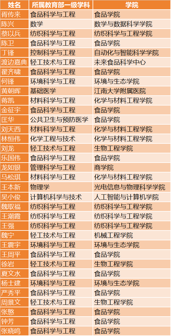 2025年江南大学“中国高被引学者”名单