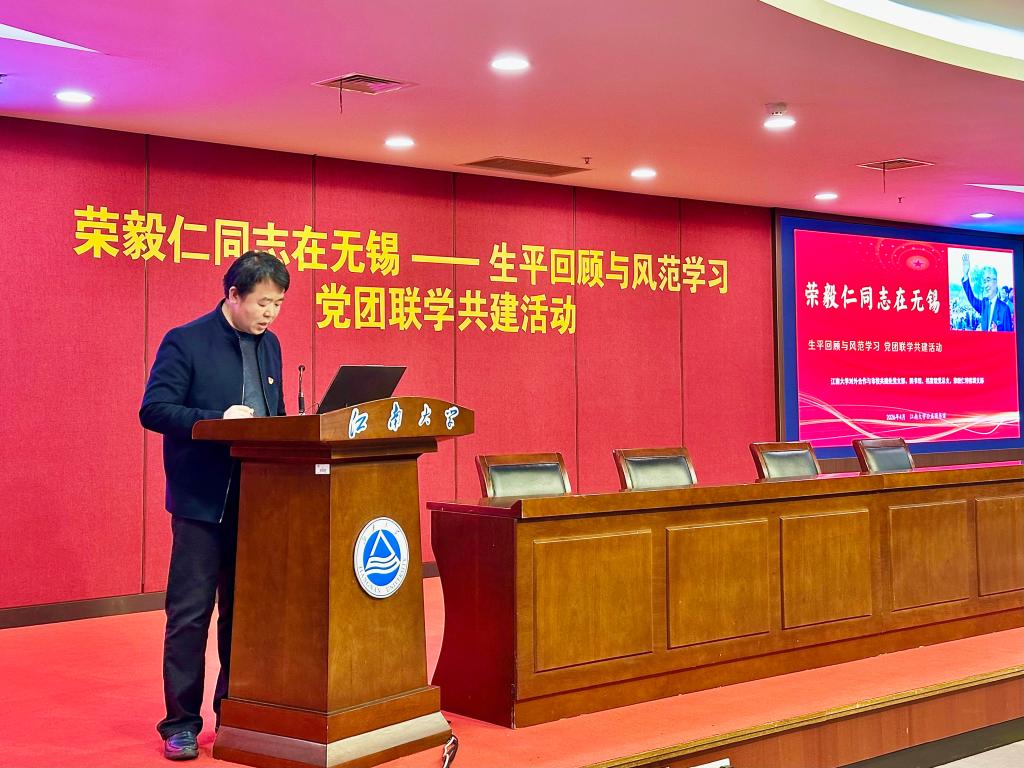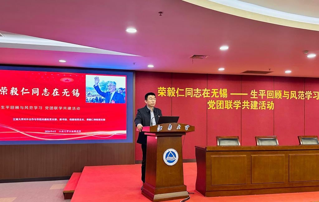 春风润江南,薪火照初心。4月伊始,江南大学对外合作与市校共建处党支部,图书馆、档案馆党总支,荣毅仁特称团支部在江南大学公益图书馆联合举办“荣毅仁同志在无锡——生平回顾与风范学习”党团联学共建活动,重温荣毅仁同志光辉生平,学习其崇高风范,引导党员、干部坚定理想信念、激励团员青年赓续红色血脉,勇担时代使命。江南大学原副校长王武、党委宣传部副部长俞立峰、校团委副书记任轶博、生工学院分团委书记周春江、食品学院学工办副主任吴爽、辅导员穆元炜,对外合作与市校共建处和图书馆、档案馆全体教职工,食品学院、生工学院荣毅仁特称团支部全体同学参与活动。活动由图书馆、档案馆党总支书记李凤梅主持。
