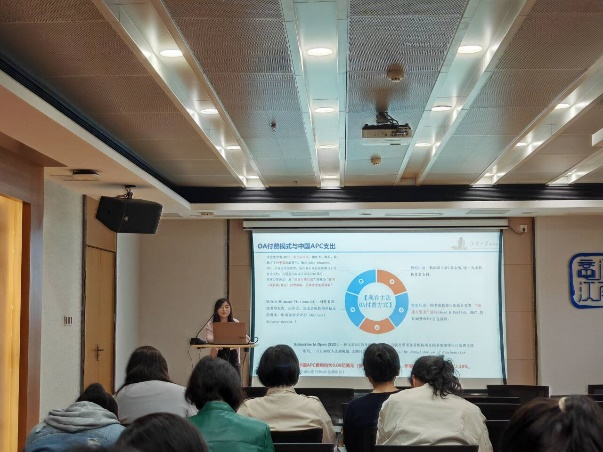 张老师首先为大家详解了开放科学的定义与属性。开放科学系1991年美国Paul A. David首次提出的概念,通意为一个集各种运动和实践于一体的包容性架构,旨在实现人人皆可公开使用、获取和重复使用多种语言的科学知识,为了科学和社会的利益增进科学合作和信息共享,并向传统科学界以外的社会行为者开放科学知识的创造、评估和传播进程。学界普遍认为开放科学的逐渐兴起必将引领一场学术革命。接着,张老师作了开放科学资源的全景导览,随后介绍了开放科学的实践指南。她表示,在开放科学时代高校图书馆资源建构面临着采购焦点转移和经费管理重构的严峻挑战,即未来馆员必须从“采购期刊内容”转向“支持作者发表”和“采购开放协议”,同时还必须将有限预算努力达成期刊订阅和APC支出之间的全新平衡。她最后指出,新时代的高校图书馆资源建构必将完成角色转变,可形象理解为从采购员到顾问、从资源库到平台方、从买方到谈判者。